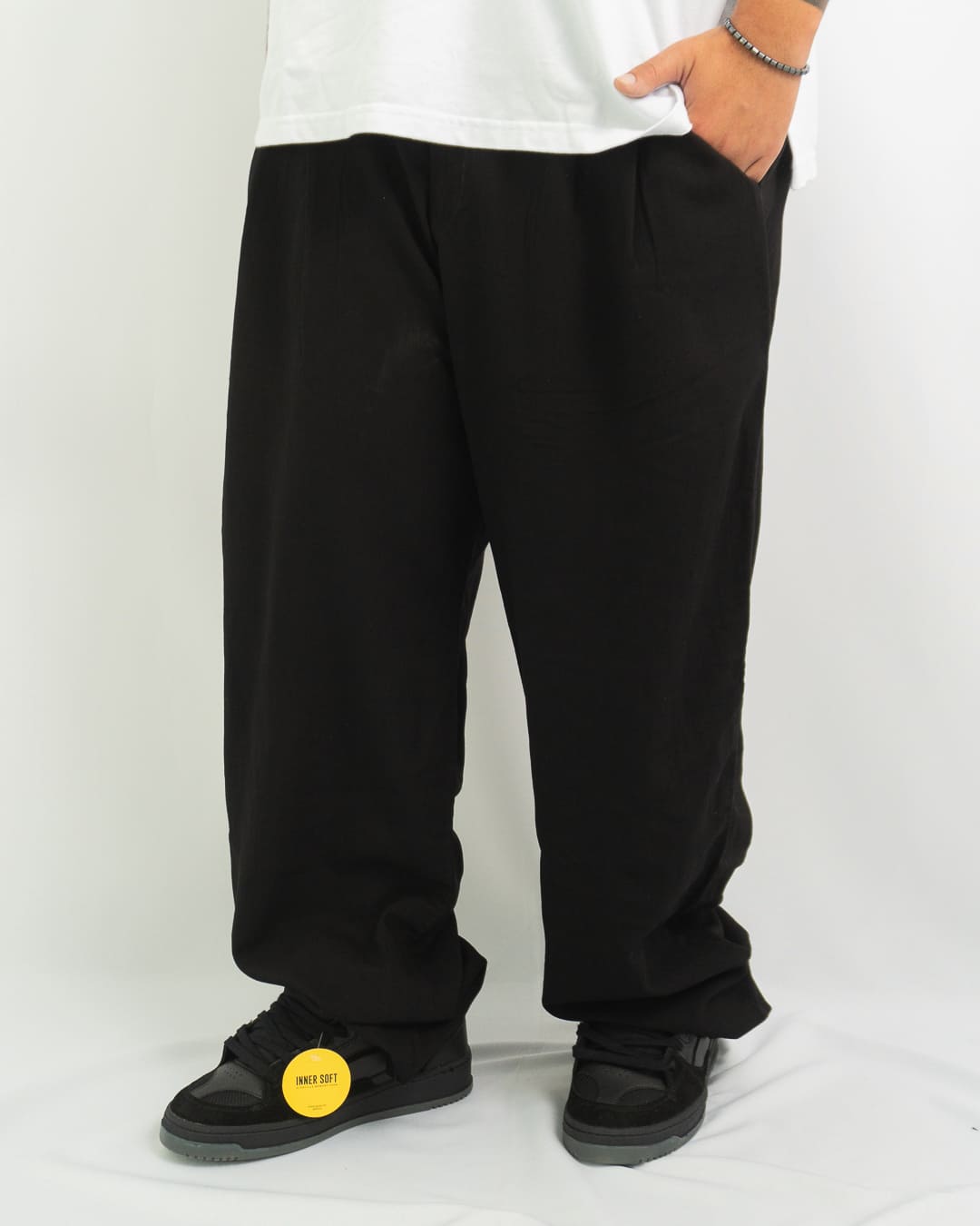 Con un calce Baggy, Ancho y excelente caída.