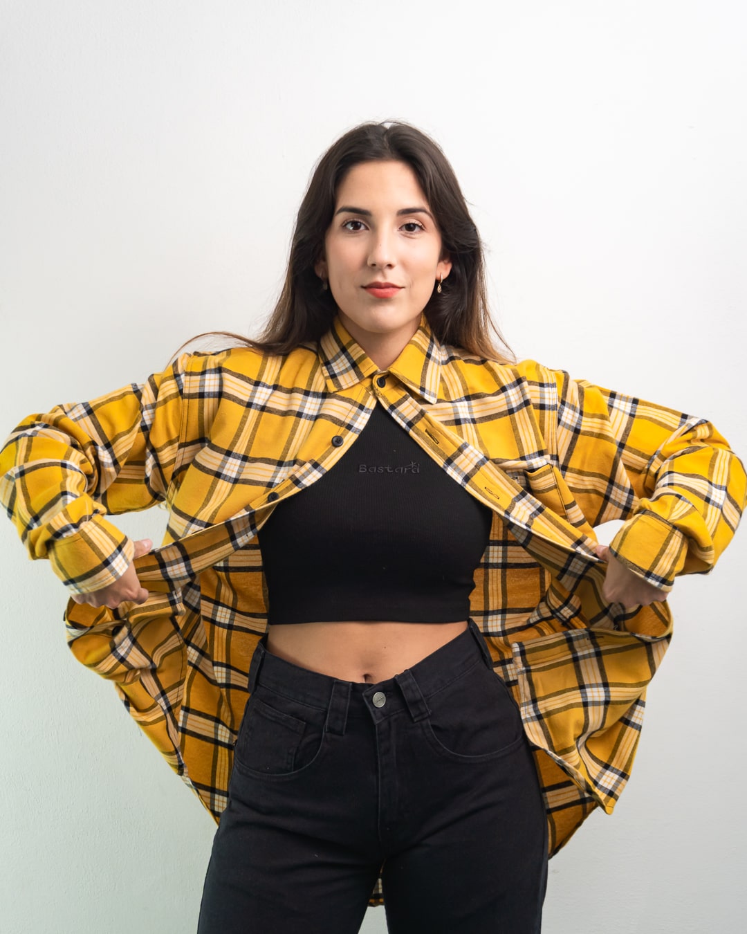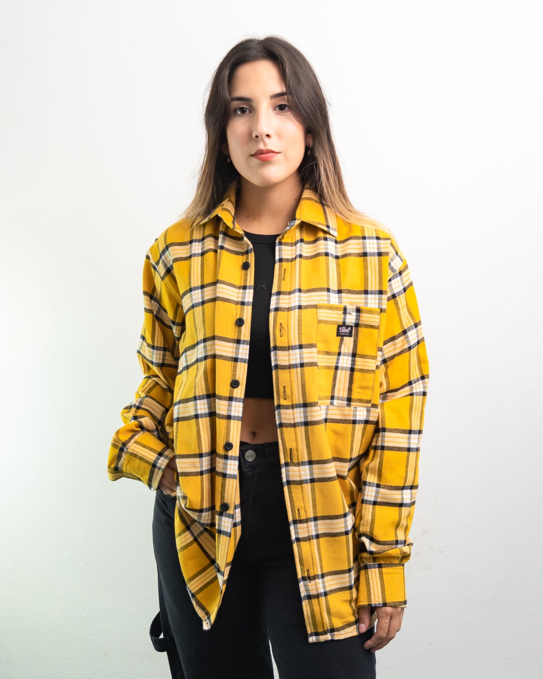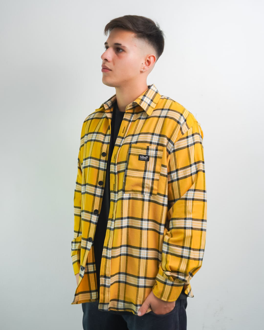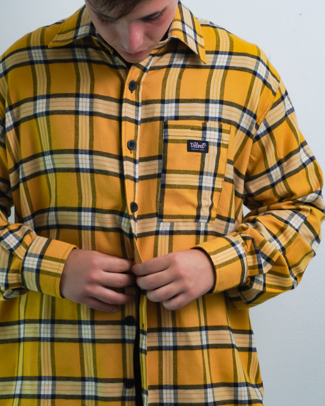 Camisa VELVET viyela a cuadros con un bolsillo.